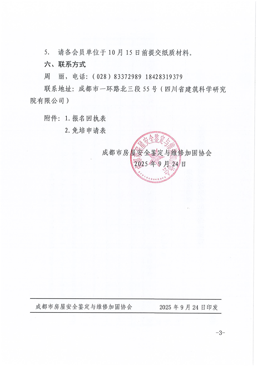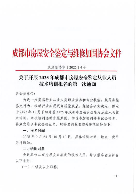 关于开展2025年成都市房屋安全鉴定从业人员技术培训报名的第一次通知